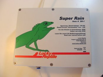 Bevattningen i nanoskåpet sköts med ett regnsystem. Jag valde Rucky Reptile Super Rain dels för priset och dels för att snabbt kunna montera upp dysorna (de som sprutar ut vattnet) eftersom man kan sätta upp dem med enkla sugproppar. Nu kanske man undrar hur bra dom verkligen är? Och nej, de är inte särskilt bra, det händer att de lossnar så jag har dom under uppsikt.